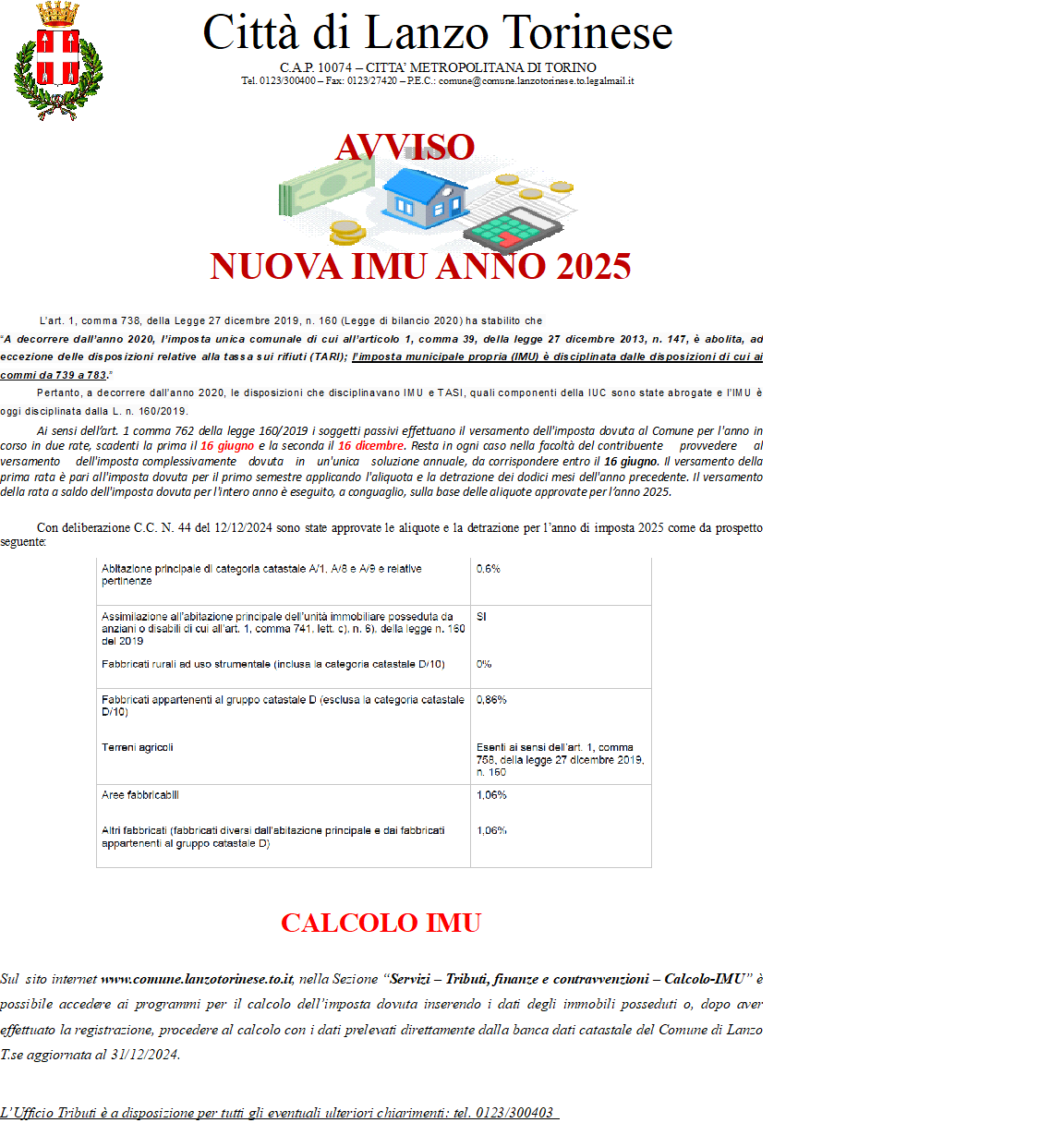 Ai sensi dell’art. 1 comma 762 della legge 160/2019 i soggetti passivi effettuano il versamento dell'imposta dovuta al Comune per l'anno in corso in due rate, scadenti la prima il